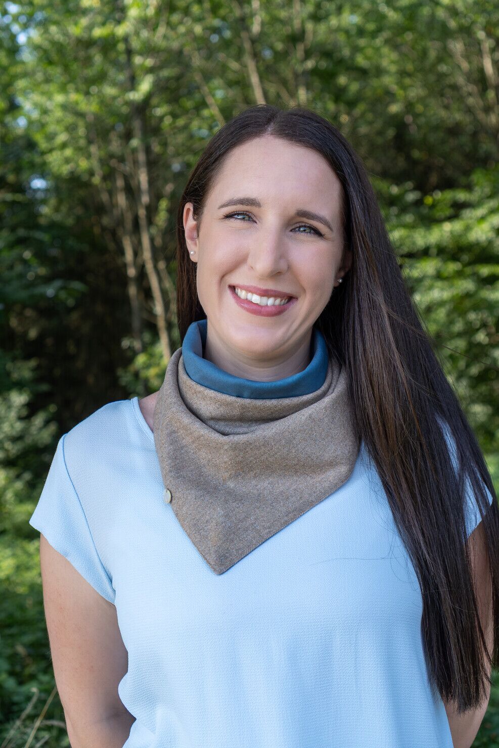 Der Fischgrät-Loden in sanftem Taupe wird mit verschiedenen Farbtönen kombiniert – wahlweise in Taupe, Ozeanblau oder Rhododendron. Drei harmonische Farbvarianten, die sich vielseitig kombinieren lassen. Ob du VIOLIN als Nickituch zur Bluse trägst, lässig zur Lederjacke oder elegant zum Blazer – dieses Accessoire begleitet dich verlässlich von Spätsommer bis Frühling.